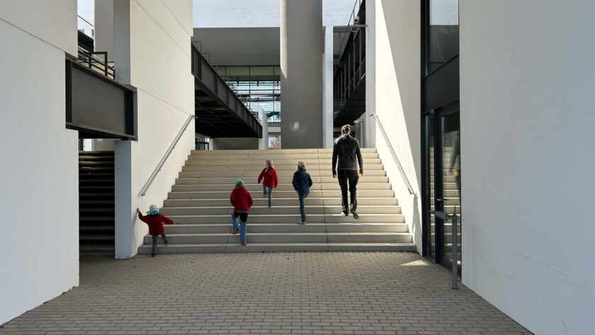 Schließlich erreichen wir das „Haus der Geschichte“, ein kostenloses Museum zur deutschen Nachkriegsgeschichte. Es wird zwar gerade umgebaut, aber die Ausstellung ist in kompakter Form zugänglich. Für kleinere Kinder sind die Exponate nicht gut geeignet, aber wir Eltern würden am liebsten alles genau studieren — wenn die Kleinen nicht zu ungeduldig wären. Also suchen wir draußen nach Beschäftigung.