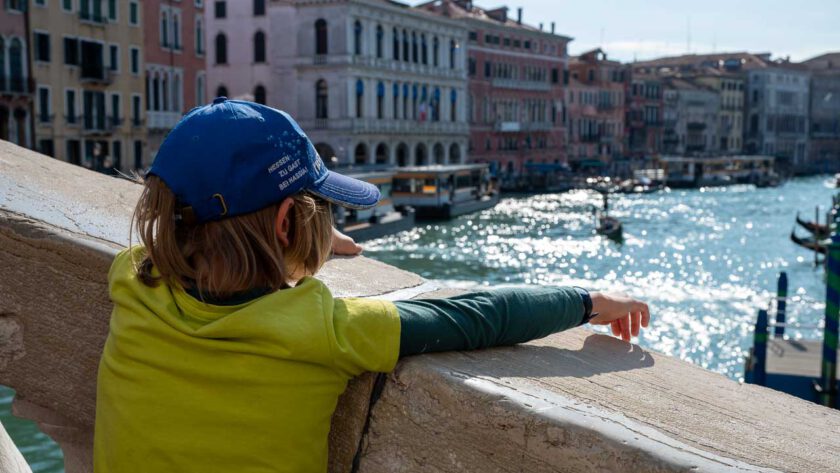 Selbst der Wohnmobilstellplatz (direkt neben dem Fähranleger) kostet unter 20 Euro die Nacht und ist der perfekte Ausgangspunkt für die halbstündige Überfahrt. Eine Gondel privat zu mieten wäre eine größere Investition, aber unseren Kindern (und uns) genügt die wackelige Überfahrt über den Canal Grande für zwei Euro pro Nase.