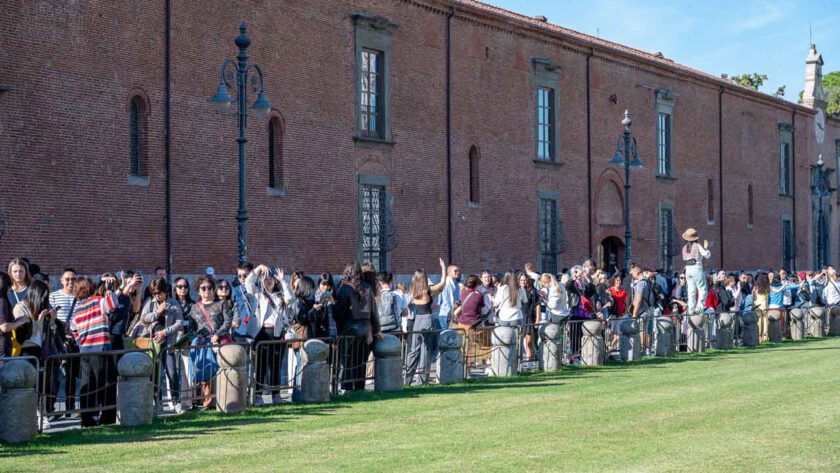 Obwohl Massen an Touristen unterwegs sind, öffnen sich immer wieder fast uneingeschränkte Blicke auf das berühmte Ensemble aus Dom, Baptisterium und Glockenturm. Ich selbst habe den Turm noch nie zuvor gesehen oder mich besonders für ihn interessiert, doch die Kinder hatten darüber gelesen und wollten ihn unbedingt sehen. Ich muss sagen, es hat sich gelohnt zu kommen. Schon beim ersten Blick bin ich überrascht, dass das Bauwerk überhaupt noch steht. Da ist auch der Spaß erlaubt, die üblichen Bilder mit zwei stützenden Händen am Turm zu machen, für die hier Hunderte Touristen aus unzähligen Ländern gleichzeitig posieren.
