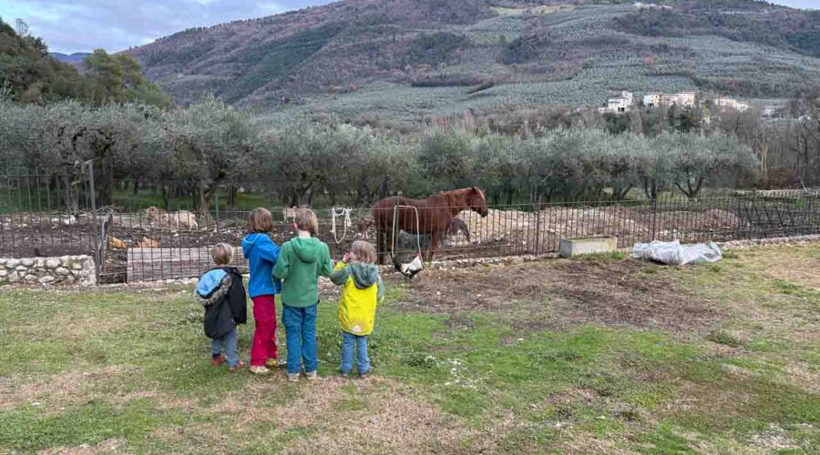 Weihnachten feiern wir dieses Jahr in Umbrien. Auf einem Spielplatz picknicken wir mit den Köstlichkeiten, die wir davor bei unserem traditionellen Weihnachtseinkauf ausgesucht haben. Danach fahren wir zu einem kleinen Bauernhof-Campingplatz, wo wir für zwei Weihnachtstage herzlich empfangen werden. Den ersten Weihnachtsfeiertag verbringen wir mit einer abenteuerlichen Wanderung in ein höher gelegenes Bergdorf.